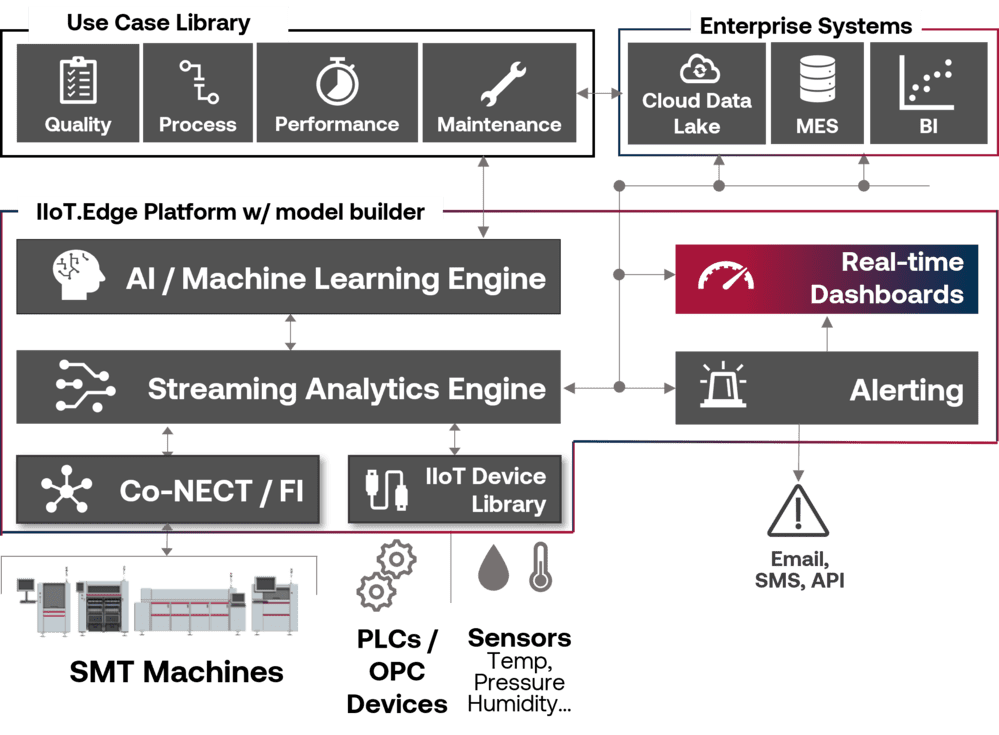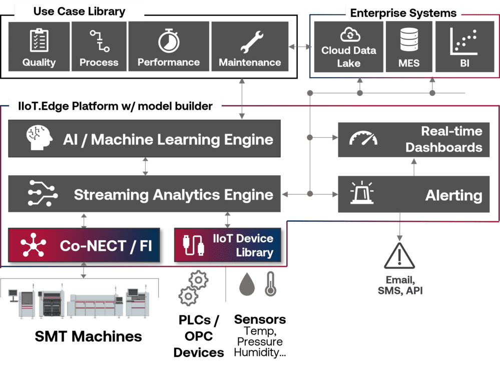 IIoT.Edge uses our Co-NECT platformto gather data from all SMT machines. Co-NECT has the industry largest library of machine interfaces and has been trusted by Jabil for 2000+ machines.